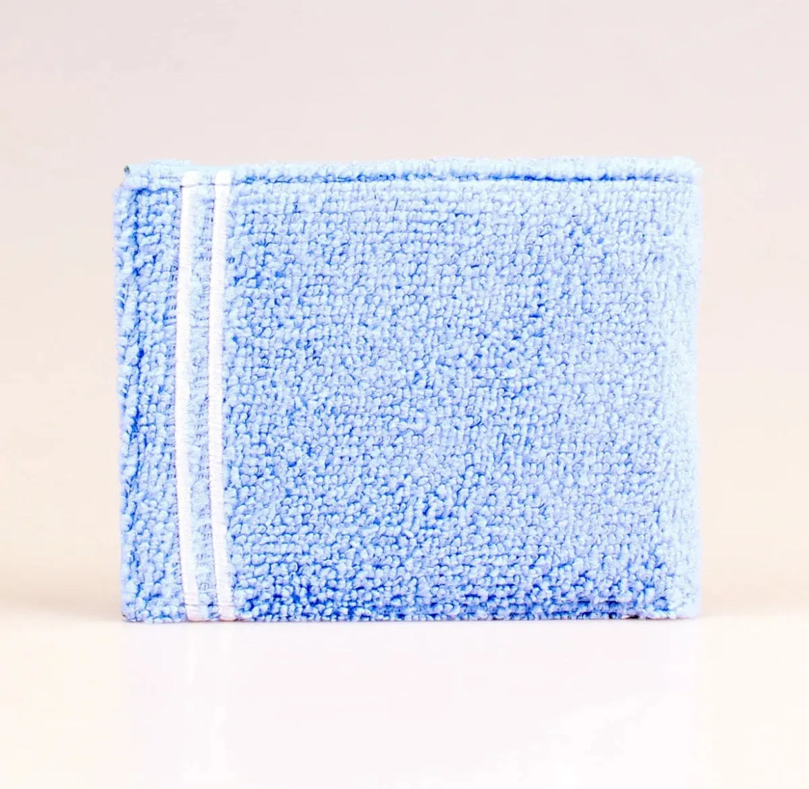Esta cartera y billetera de tela azul es una opción práctica para llevar tus esenciales. Su simplicidad la hace adecuada para cualquier ocasión.